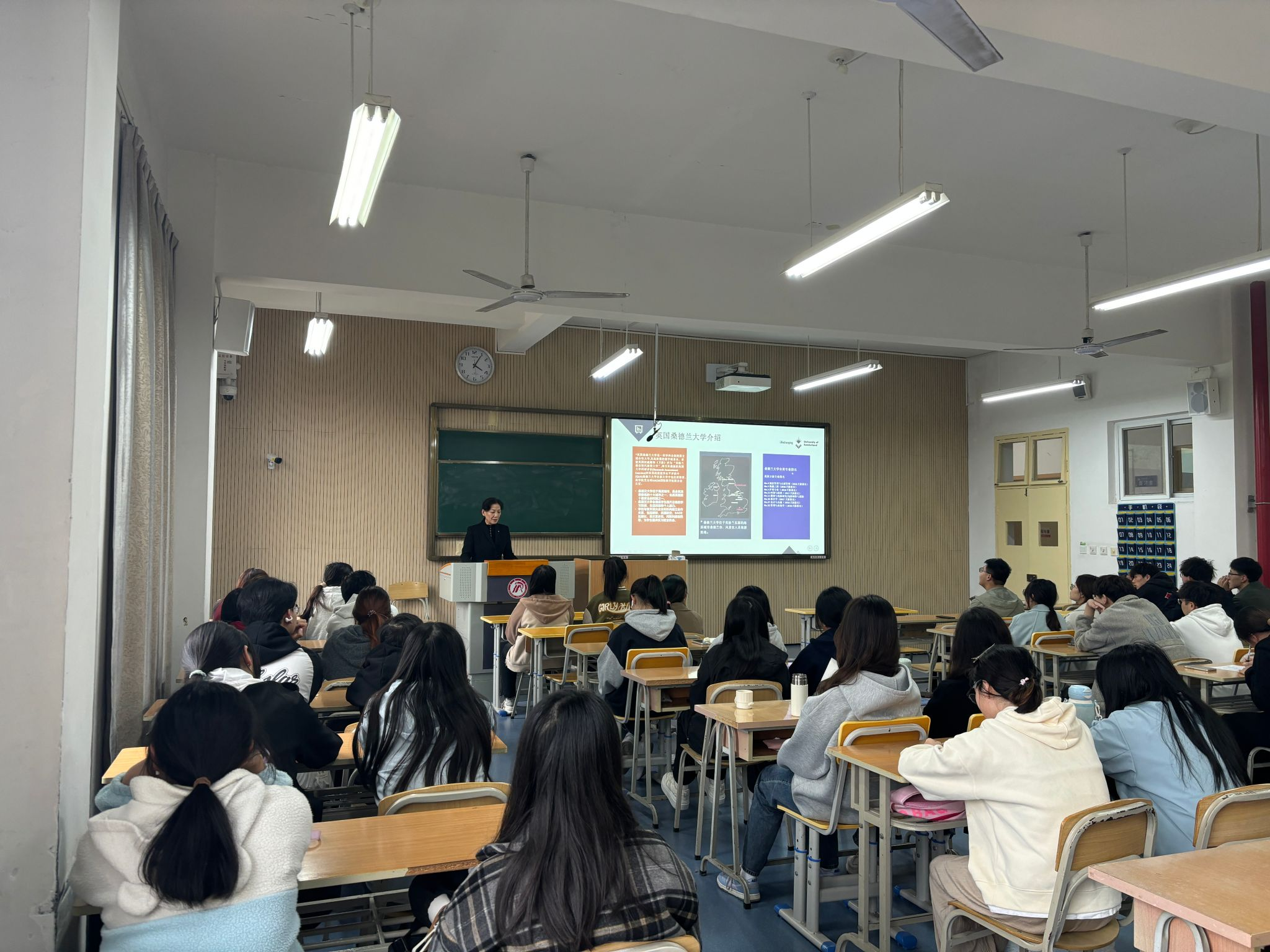 随后,校方代表就桑德兰大学两所高校学位项目入学要求、对接专业、录取要求、课程考核方式等为员工们做了具体讲解,对“2+1+2”、“3+1+1”等学位项目概况、专业设置、学制设置、申请要求等方面内容做了详细解读。
