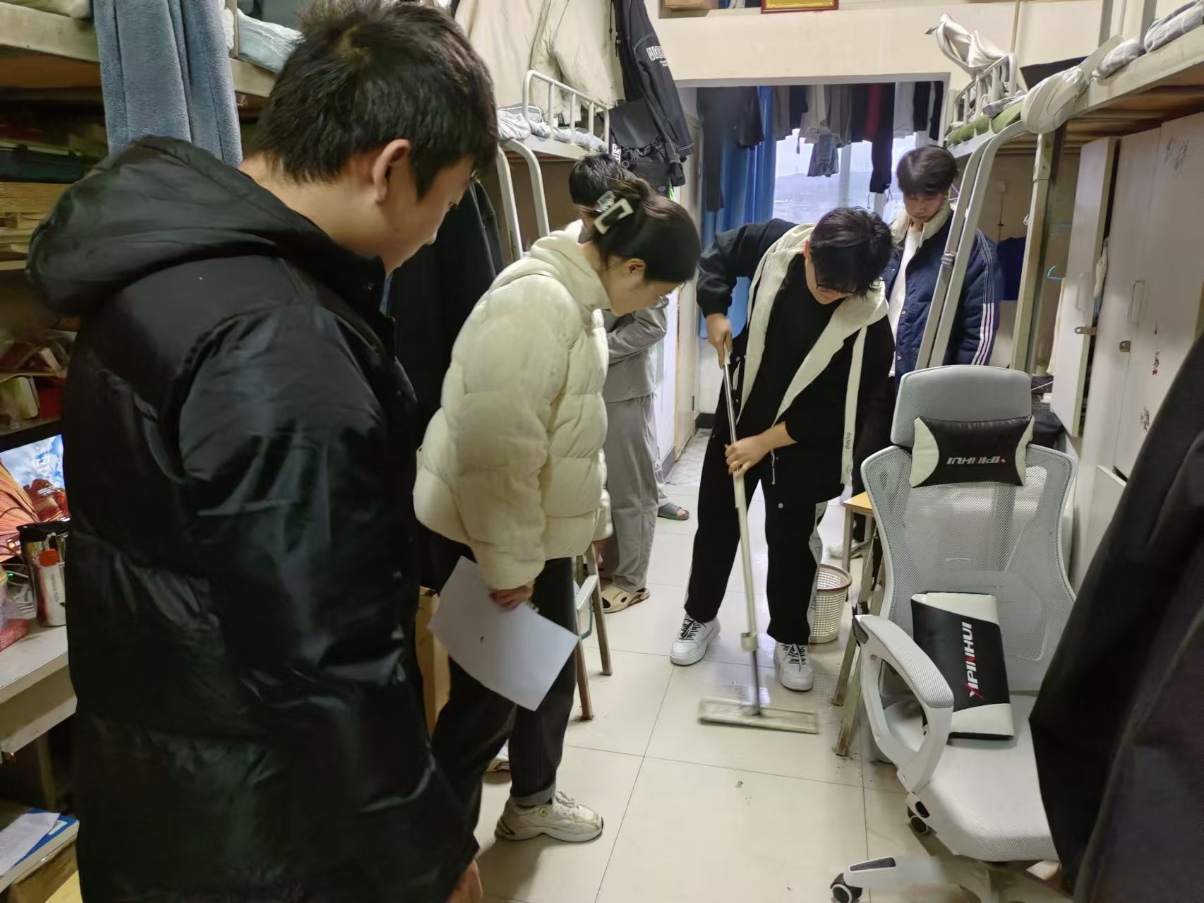 为进一步加强员工宿舍管理,营造安全、整洁、文明的宿舍环境,11月20日下午,公司党总支副书记王瑜和全体辅导员分别深入各宿舍,针对员工宿舍用电安全、宿舍卫生及违规电器等情况进行全面检查。