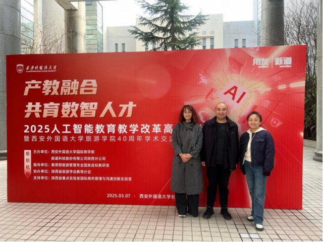 论坛期间,西安外国语大学联合新道科技等高校与企业共同研发的“启智AI大模型训推一体机”正式发布,训推一体机的落地标志着产教融合进入“三螺旋”深化阶段——以技术突破重塑教育流程(教育链)、以真实需求反哺技术迭代(产业链)、以应用场景催生创新标准(创新链)。陈绪敖应邀参加了“人工智能赋能专业改革圆桌会议”,与国内旅游院校专家探讨文旅人才培养的机遇与挑战。面对人工智能、元宇宙等技术对行业的重塑,与会专家形成共识:需构建“三维驱动”改革框架——在团队建设维度,增设智能决策分析、数智场景设计等交叉课程模块;在培养模式维度,推行“技术导师+产业导师”双导师制与项目制教学;在生态构建维度,打造跨学科教研共同体与资源共享平台。中国旅游教育学会副会长马勇教授特别指出:“数字化转型不是简单的技术叠加,而要通过“技术素养×管理思维×人文底蕴”的乘积效应,培育具有商业洞察力的数智化战略人才。