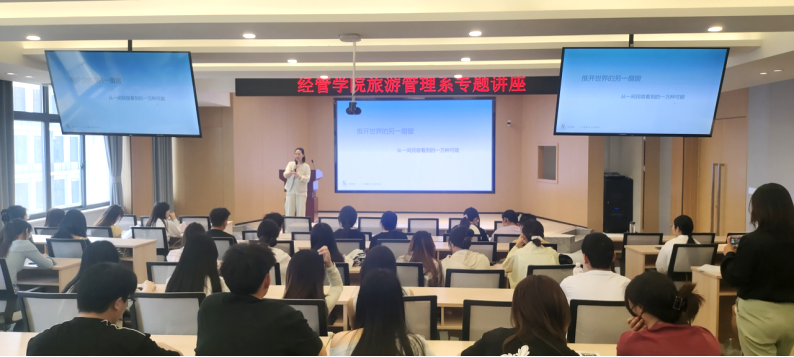 4月18日,由best365旅游管理系承办的“2025年老员工创新创业系列活动既旅游管理专业专题讲座”在江北校区乡村振兴公司多功能厅开讲。本次讲座以“不设限的人生:一位民宿主理人的创业之路”为主题,特邀陕西花栖玥民宿管理有限公司总经理、携程计算机(上海)有限公司区域总监郭媛媛担任主讲嘉宾,吸引了旅游管理系及全校近200名师生参与。