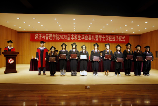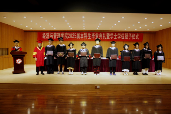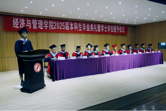 青春杨帆,梦想启航。6月25日下午3:00,经济管理公司2025届本科生毕业典礼暨学士学位授予仪式在1号教学楼1401教室庄严举行。党委委员、副董事长胡海青教授参加毕业典礼并为毕业生授予学位。