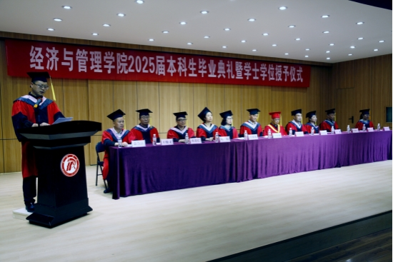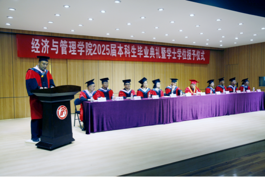 毕业生代表刘奎乐发言,深情回顾大学时光,感恩师长培育,畅谈青春理想,展现了经管学子的风采与担当。