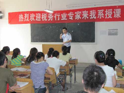 为了提高员工纳税实务知识和技术,服务于应用型人才培养目标的实现, 6月25日下午,经管系邀请安康市汉滨区税务局税收管理员沈君康老师给07级财务管理专业同学进行了现场教学活动。