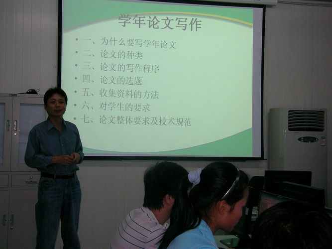 2010年6月12日,该专业学年论文指导老师李勇就为什么要写学年论文、论文的种类、论文的写作程序、论文的选题、收集资料的方法、对员工的要求和论文整体要求及技术规范等问题给员工做了2个学时的讲座辅导。同时,就相关问题回答了员工的提问。紧接着在随后两天又安排员工进行了6个学时的现场收集资料、论文选题等集中辅导。通过辅导、沟通,在论文选题上充分发挥了员工的主动性,保证了一人一题,题目拟定合理。