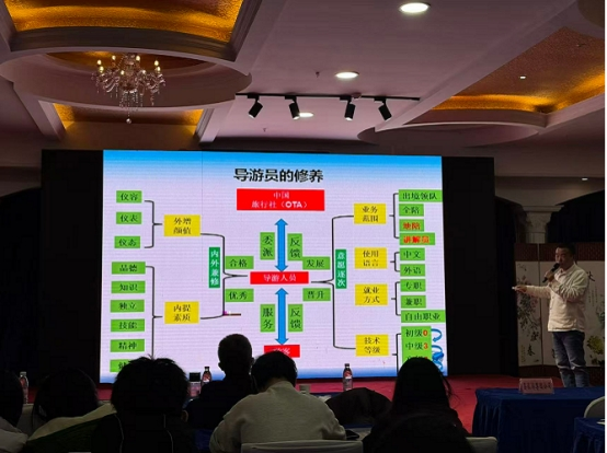 专题从景区讲解员/导游员视角出发,以南宫山景区和岚河夜画景区为例,从讲解意义、沿途讲解、景区讲解、讲解技巧及注意事项和自我修养五个方面展开,深入剖析如何提升业务水平,如何通过真诚和人性化的讲解服务让游客记住岚皋,真正践行一座城服务一个人的服务理念。本次培训是岚皋县深化“金智惠民”工程、推动旅游产业高质量发展的重要举措之一,也为公司服务地方经济社会发展和建言献策提供了有效平台。同时为旅游服务与管理规范课程群建设,教师专业理论指导实践得到应用推广,为安康市文旅人才培养、旅游服务管理和国一流专业建设助力!