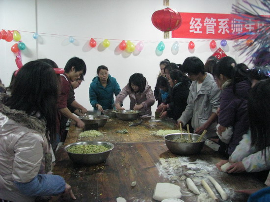 活动二:2009年12月31日下午,经管系在西校区食堂举行了庆元旦师生包饺子活动。通过师生包饺子比赛,增强了师生交流和班级的凝聚力,营造了温馨和谐的节日气氛。