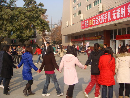 活动三:2010年1月1日,经管系与教科系组织不回家的新生在西校区举行了“庆元旦话未来员工联谊活动”。 活动分为三个环节:一是开展丢手绢、打沙包、踢毽子、跳大绳、跳格子、贴人、拔河等游戏竞赛活动,营造欢乐节日气氛;二是猜灯谜,启迪思维,丰富同学们的百科知识;三是举行“庆元旦话未来员工联谊茶话会”,同学们总结过去,畅想未来,热烈讨论自己的老员工活,激情澎湃,整个活动收到了良好的效果。