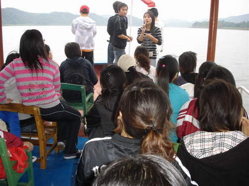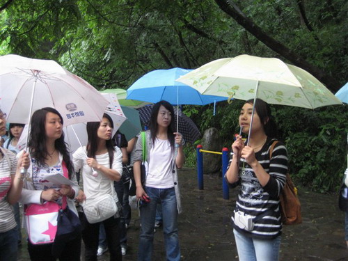 实习中,员工冒着大雨在香溪洞景区认真聆听导游的讲解,求知的热情丝毫没有受到天气的影响,主动向景区内的工作人员请教。在汉江奇石展览室,奇石收藏家为员工讲解了如何欣赏奇石。在汉江公园、汉调二黄广场员工们分组进行了模拟导游讲解。08旅游管理班的员工绝大多数都是来自于自关中地区,在素有“陕西千岛湖”之称的瀛湖国家AAA级风景区,看到宽阔的湖面,清澈的湖水、茂密的植被,同学们都很兴奋,先乘船再上岛,徜徉在金螺岛、翠屏岛上,同学们欣赏陶醉在美丽如画的景观中,耳畔伴随着导游的讲解,深刻理解了导游带团的全部工作流程,指导老师将同学们分7个组,由组长负责,人人进行瀛湖模拟导游讲解,再根据同学们这些“准导游”的现场表现,指出其存在的问题,并及时纠正。