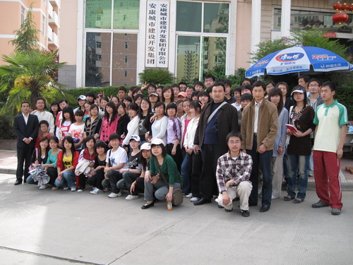根据人才培养方案和本科教学大纲计划的要求,2009年4月24日下午,07级财务管理班70名员工在任课教师陈绪敖老师和会计教研室主任唐波歧老师的带领下来到安康市城市建设开发集团有限公司进行《管理学》(任课教师:陈绪敖)和《财务管理》(任课教师:吴世珍)的课程实习教学。