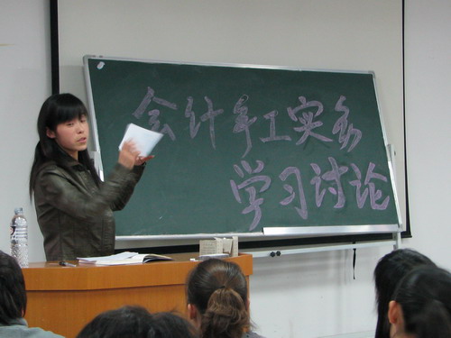 在讨论会中,潘西霞学长为07级会计专业员工讲述了自己就业两年来的经验教训,激励07级会计专业员工,告诫我们在校期间要更好地学习会计基础知识及实际手工操作能力。她还现场回答了一些同学在平时遇到的诸多疑难问题。此后07级袁成龙等多名员工代表就目前在会计手工处理学习操作过程中的体会和感受作了发言,这对大家更好的认识会计,认真严谨地学好、做好会计很有帮助。