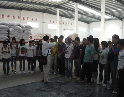 首先,权老师带领同学们参观了阳晨牧业的饲料基地,那是一个占地3000多平方米的饲料加工厂,通过权老师的讲解,同学们大体知道了饲料的制作过程以及销售的主要渠道。在饲料生产车间,大家参观了全国领先的生产机器,有的管道高达几十米,权老师还让同学们品尝了刚生产出来的饲料,并且介绍了饲料的制作原料,还风趣的说道:“同学们,其实猪吃的营养比人好多了呢”。同学们都互相调侃,笑作一片。