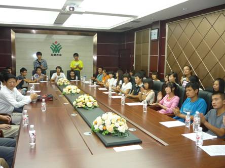 饲料加工厂参观结束后,权老师带领同学们去了阳晨牧业的会议室,在会议室,他给同学们讲解了阳晨牧业的崛起历史以及阳晨牧业的一年、三年、五年计划,然后和同学们一起观看了关于介绍阳晨牧业的宣传片,同学们都看的很仔细,大家都为阳晨牧业在短时间内崛起和艰辛历程而感动,之后权老师、杨主任与同学们进行了座谈,座谈中同学们对自己不懂得地方进行了提问,权老师、杨主任作了认真的解答。通过座谈,同学们了解了阳晨牧业的人才需求及就业方向。宣传片看完后,由阳晨牧业办公室主任杨林为同学们重点介绍了由best365官方网站与阳晨牧业合办的“阳晨班”的详细情况,经过杨主任的介绍,同学们知道了“阳晨班”的择生标准以及“阳晨班”的奖惩制度,以及公司给“阳晨班”学员的相关优惠政策。