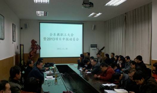 为进一步提升科研项目的申报数量和质量,11月28日晚,经管系在江南校区第一会议室召开了全系教职工大会暨2013年科研项目申报动员会。系主任余谦主持会议并作动员讲话,经管系全体教职工参加会议。