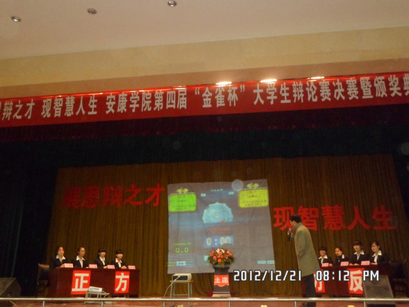 决赛中,经管系和外语系代表队围绕“应不应当允许名人免试就读大学”展开的辩论,争夺金雀奖。双方辩手互不相让,并适时抓住对方论据中的漏洞,展开反击,论辩有力,精彩辩论不时引起师生的阵阵掌声和叫好声。最终经管系以3.3分的优势捧起了本次辩论赛的“金雀奖”冠军奖杯。