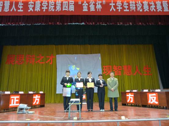 安康公司党委副书记胡鸿晓教授就两个辩题和整场辩论赛做点评,并为获得冠军的经管系代表队颁奖。