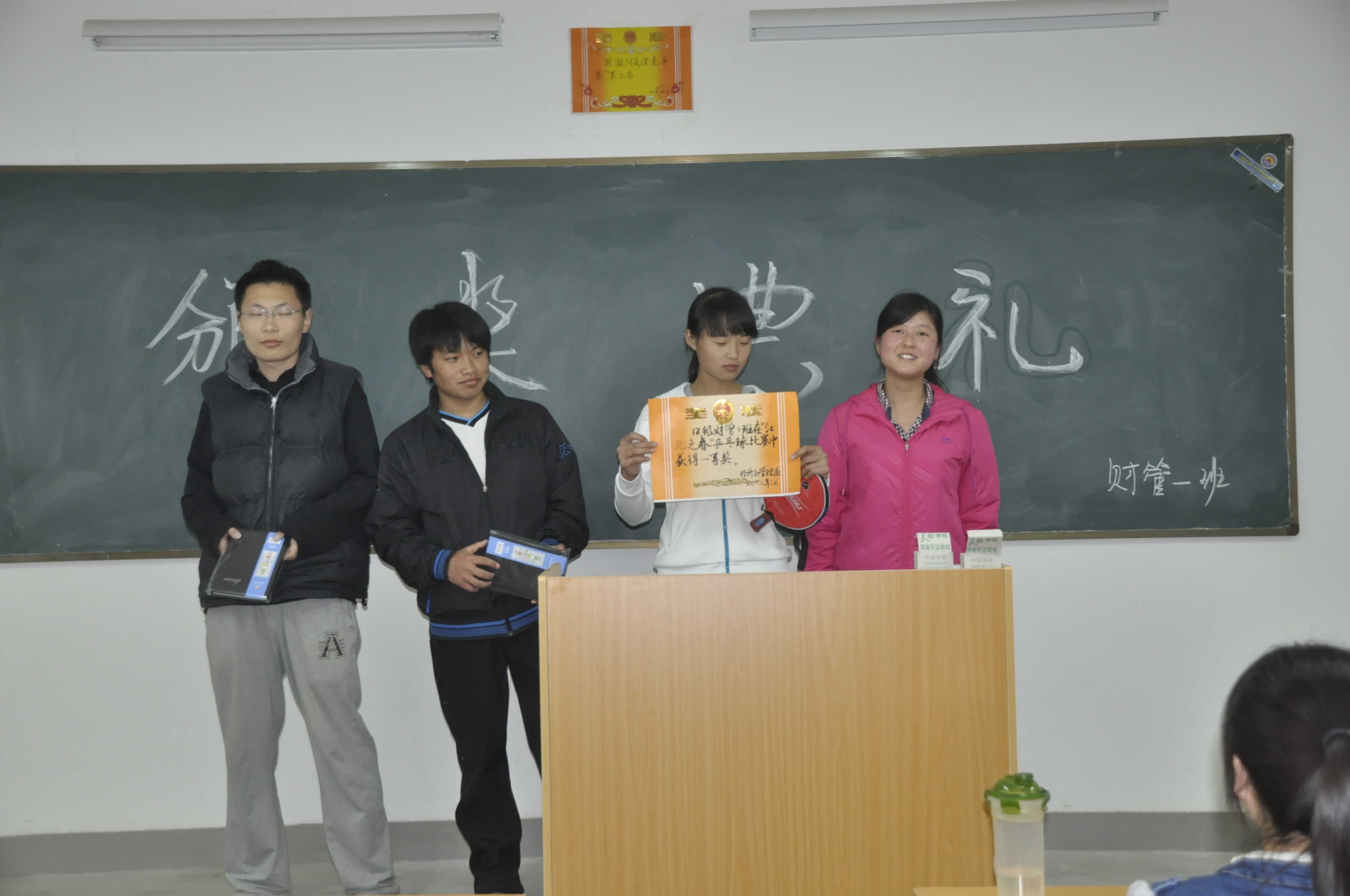 经过为期2周时间激烈角逐,2012级财管1班、2012级会计1班、2012级建管2班分别获得团体前三名,单打比赛王锦澄、崔旭超、王乐,张帆、王丹、樊珍珍等分别获得男女单打冠、亚、季军。