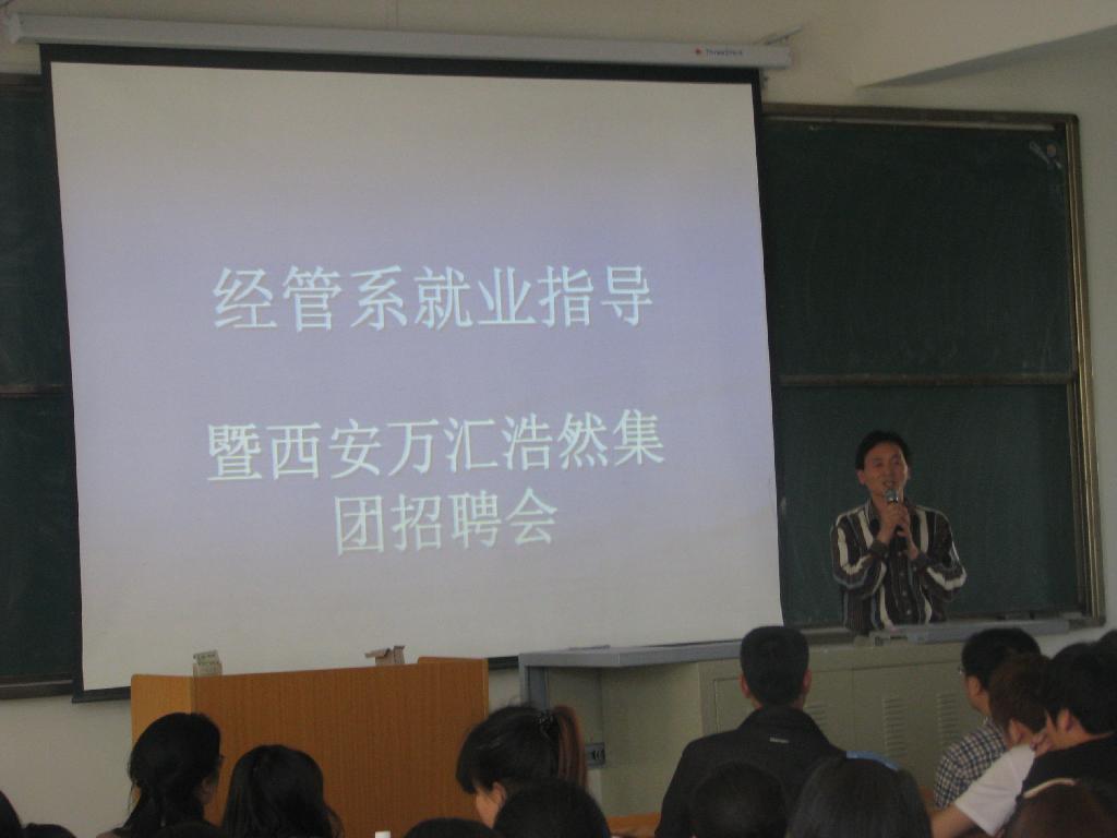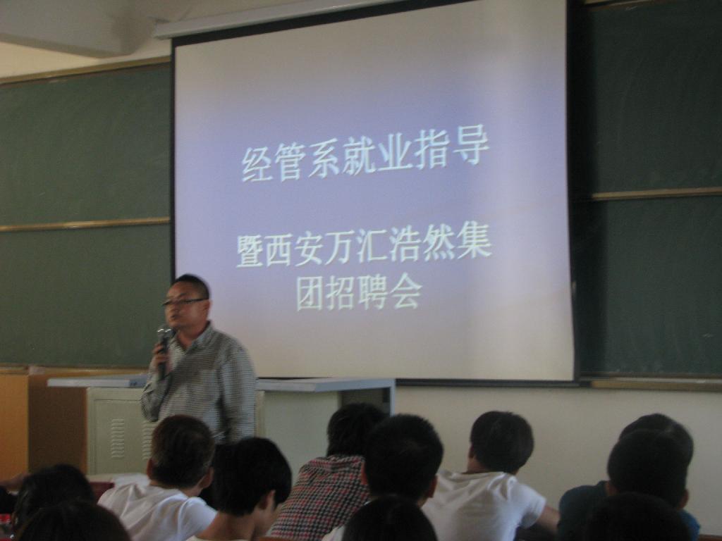 5月10日下午3:00,通过公司就业处前期联系,西安万汇浩然集团总经理和人力资源主管来到best365官方网站江北新校区,在1号楼1204多媒体教室为经管系180余名员工作了就业指导专场讲座,并根据企业用人需求举行了经管系专场人才招聘会。