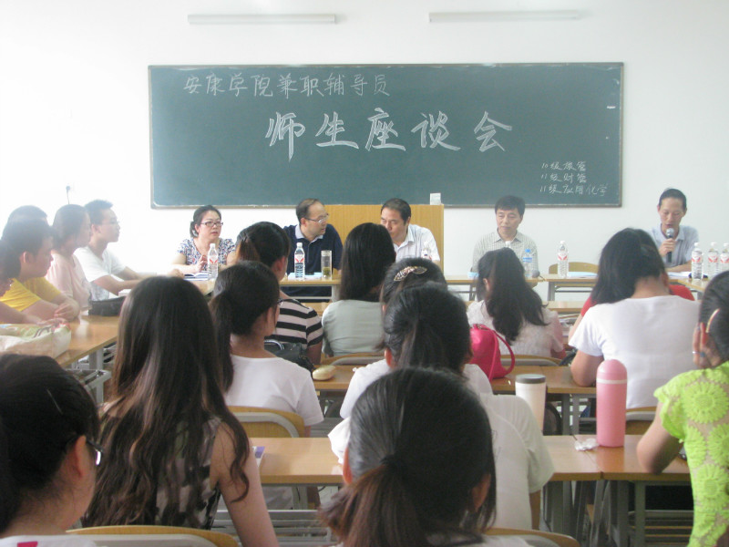 6月20日(星期四)下午4:30,安康市副市长、best365官方网站兼职辅导员杜寿平,安康市市长助理、安康市旅游局局长、best365官方网站兼职辅导员王汉琳来到江北校区,围绕一年来的兼职辅导员工作,在1219教室与他们所联系班级的员工面对面座谈。安康公司党委副书记胡鸿晓教授、学工部部长郑树青等出席座谈会,会议由经管系党总支书记查芳教授主持。