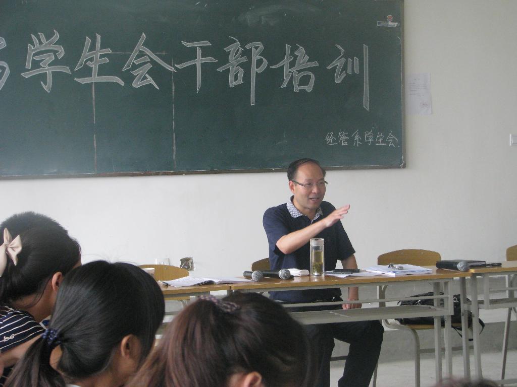 交接仪式结束后,王汉琳老师针对员工干部工作做指导。他回顾了自己十年高校辅导员生涯,让在座的的员工干部明白:大学不但是公司,还是促进员工社会化的场所。因此,担任员工干部可以进一步提升沟通协调能力、建立完善的知识与素质体系。