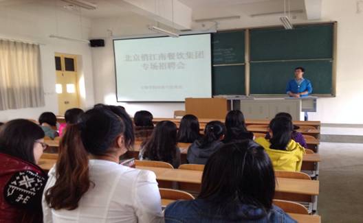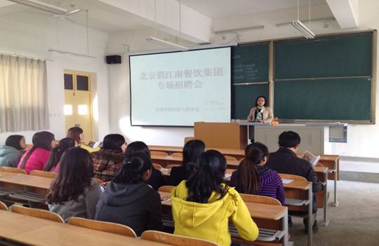 2013年11月15日下午,北京俏江南餐饮集团在江北1224多媒体教室针对经济与管理系毕业生举行了专场招聘会,该集团此次主要招聘岗位包括运营管理、财务管理和销售管理等。经济与管理系2014届财务管理、会计学和旅游管理专业的毕业生参加了招聘会。