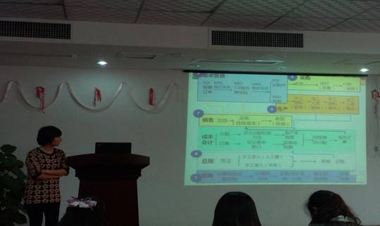 在具体的实践训练中,大家的学习热情很高,每天早上8点20上课,中午12点下课,下午是2点上课,直到晚上6点。根据公司的课程安排,同学们先上理论课,然后上机进行实际操作。为了加深师生间的了解便于沟通交流,该公司老师在理论课堂上除了讲授相关的理论知识以外,还在每次课开始前20分钟让同学们分享自己有意义的经历和学习体会。在具体的上机操作过程中,涉及的业务流程主要有:基础设置、需求计划、采购管理、生产管理、销售管理、期末处理等。每个小组进行一个具体模块的训练操作,各个成员分工明确,最终能够准确地核算出目标企业的成本和利润。经过两天的学习,员工渐渐适应了这种快节奏的工作生活,加班加点已经成为一种常事。