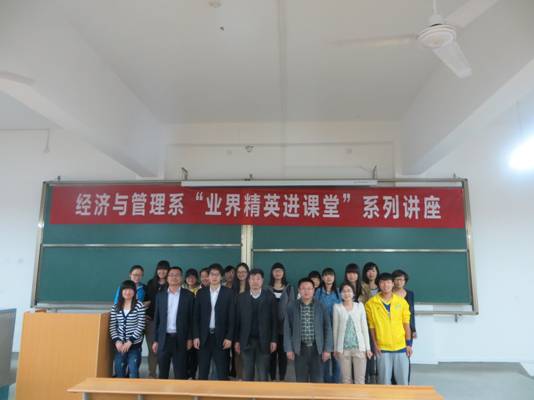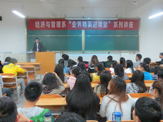 2014年4月16日晚7:30,经济与管理系 “业界精英进课堂”系列讲座第四讲在江北校区 1203阶梯教室举行,本讲邀请安康城市建设开发集团总工程师郑飞先生为工程管理、建筑经济管理专业员工作题为“房地产企业工程管理特点与人才需求”的报告,报告会由经济与管理系副主任成党伟主持。