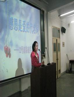 活动一经发起,我系员工积极响应,教育活动在全体新生中多渠道开展。在各班班委的精心准备下召开了感恩主题班会,积极组织义务打扫校园卫生、去餐厅做监督员。系员工会宣传部组织策划进行了一场“心怀感恩与爱同行”的演讲比赛,经管系志愿者服务队还自发前往安康市阳光小学、敬老院进行志愿服务活动。