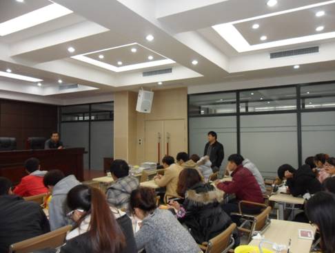 上图为安康建筑设计院张主任在为同学们介绍安康建筑设计院概况