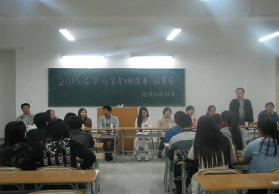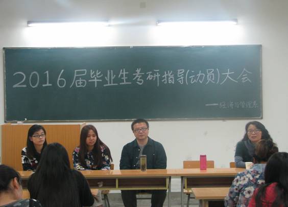 4月20日——21日,经管系在江北校区1317、1421教室分场次开展2016届毕业生考研动员暨指导交流活动。本次活动主要目的:一是动员已通过英语四六级的员工、学业成绩靠前具备考研实力而没有意识到考研意义的员工,根据自己的职业规划争取不要错过深造机会。二是对已经确定考研目标,正在复习考研的员工进行针对性指导。
