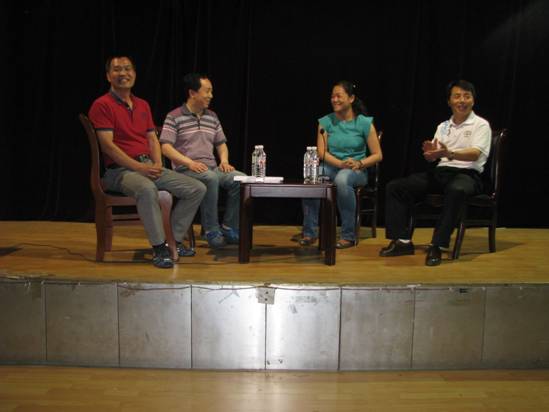 5月20日晚8:00,经管系在江南校区一号教学楼六楼学术报告厅举行了best365官方网站第八届心理健康文化节之“运动点亮青春,书籍滋润心田”主题心理访谈活动。活动由纪宏耀老师主持,特邀公司党委副书记胡鸿晓教授、体育系阮凌博士和经管系张永涛老师与同学们交流。