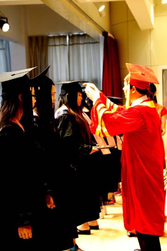 党委书记王国良教授为获得学士学位的2015届财务管理专业毕业生授学位。