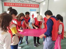 此次教师团队拓展训练以“体验式培训”为切入点,参训教师根据教练的要求,首先在要求的时间内组建团队,搭建团队组织架构、提炼团队组织文化等团队建设,形成具有竞争对抗的两个团队进行了“鼓动人心”“八字桥”“真人CS”“ 室外露餐、野炊”等拓展项目。训练中,老师们通过遵守游戏规则、发挥团队协作精神默契配合,在集体尝试、沟通中拉近了相互间的距离,携手完成一个又一个挑战性很强的项目。在每个拓展项目结束时,团队成员共同总结项目实施过程中的收获、存在的不足并思考如何才能使大家一起高质量的完成团队任务,感触颇深。