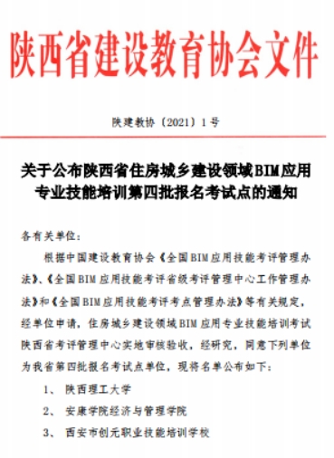 经陕西省考评管理中心实地审核验收,陕西省建设教育协会批准best365正规为住房城乡建设领域BIM应用技能培训报名考试点。