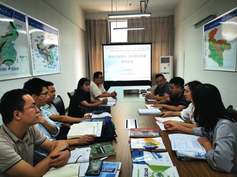 为进一步加强教学管理,严肃教学纪律,保证正常的教学秩序,提高教学质量,9月23日下午,公司工程管理系全体教师在逸夫科技楼4003召开以“教风引领学风,提高教学质量”为主体的研讨沙龙活动,会议由系主任唐百晓老师主持。