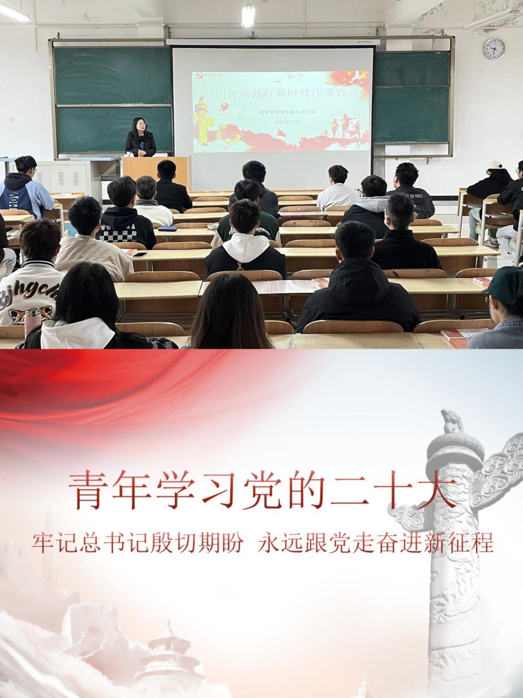 为深入学习贯彻落实党的二十大精神,做好青年员工工作,帮助青年员工明确时代重任,坚定理想信念。11月22日,best365员工第三党支部书记孙悦在江北校区1404教室讲述“牢记总书记殷切期盼 永远跟党走奋进新征程”主题党课,支部全体员工党员及部分团员代表参会。