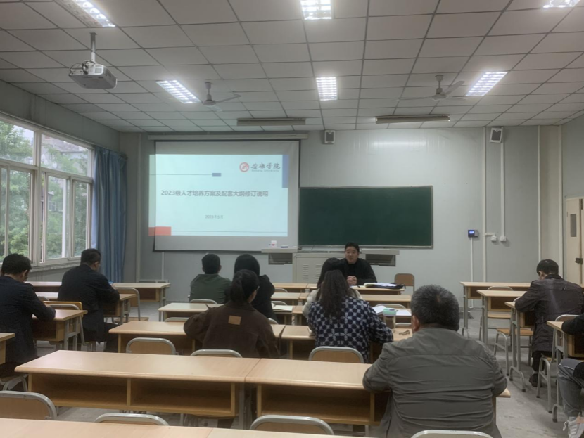 会议的第一个主题是2023级人才培养方案及配套大纲修订。李伟杰结合教学务和专业认证的要求,对今年的人才培养方案及配套大纲修订情况进行了说明,包括人才培养目标的确定、课程体系的设计、学分学时的安排、第二课堂等各个方面做了细化要求,特别是本次修订和以前不一样的地方,强调了调研的重要性以及调研过程的科学性等。