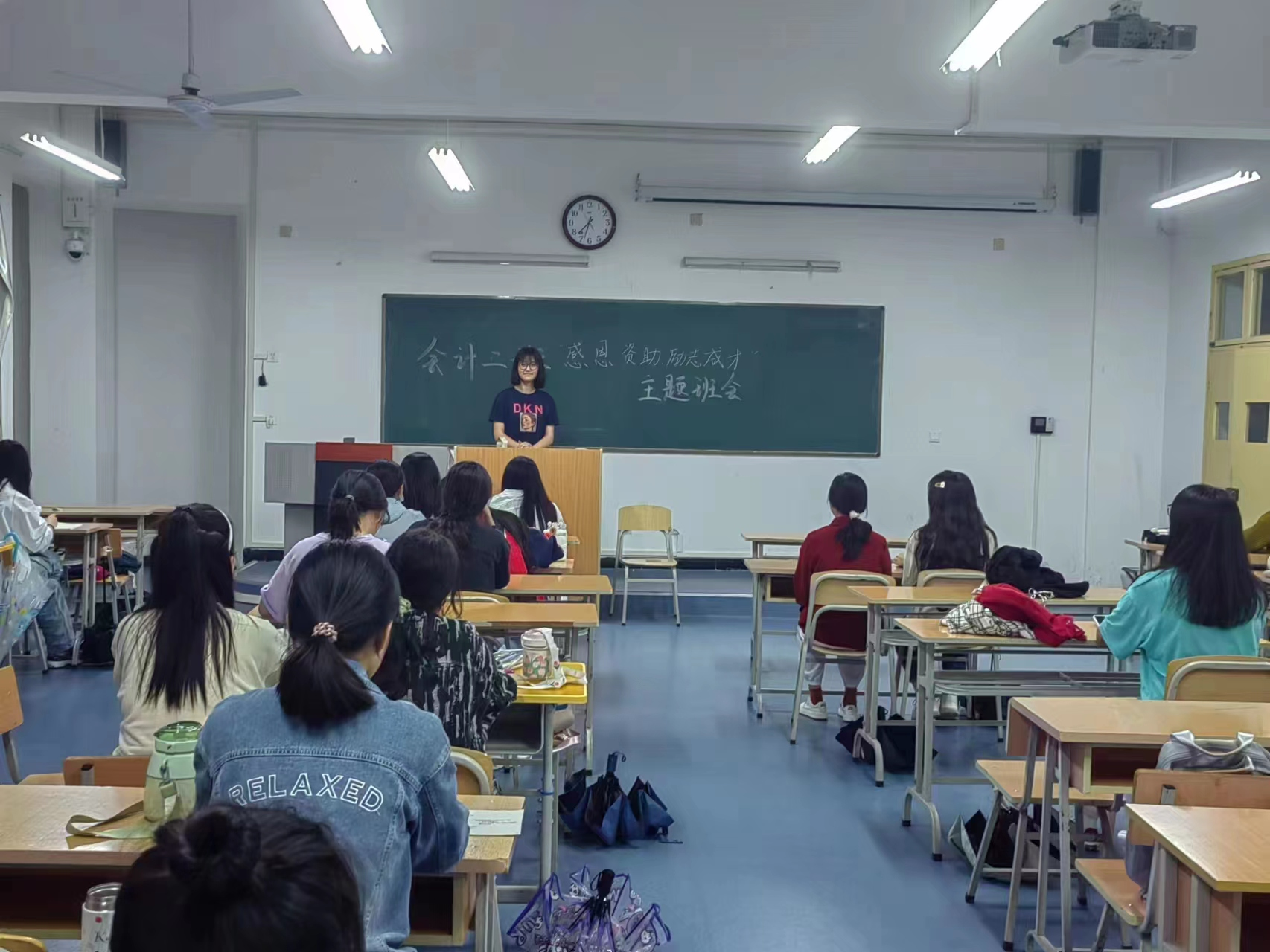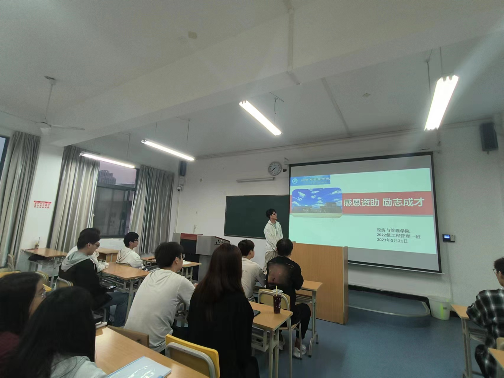 班会上,各班班长带领班委会成员建立受奖受助台账,获得国家助学金的同学踊跃发言,讲述国家助学金带给自己的生活改变以及他的助学金用途。