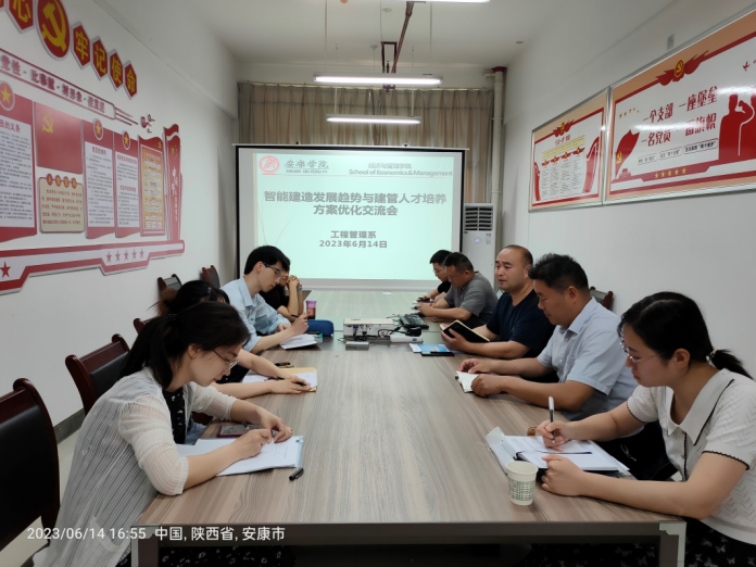 6月14日下午,工程管理系在陕南生态经济研究中心4003会议室,召开智能建造发展趋势与建管人才培养方案优化交流会,会议由系主任唐百晓主持,陈绪敖、李伟杰副经理参加了交流。