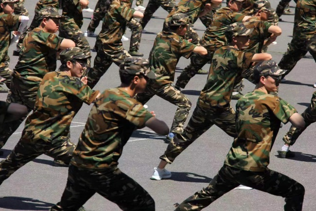 时光飞逝,光阴荏苒。七天的军训生活在不知不觉中已经结束!回顾这七天,紧张而又充实,七天里,他们经历了烈日和风雨的洗礼。皮肤晒的黝黑,汗水肆意流淌,但他们的身姿挺拔了,集合迅速了,纪律严明了,内务整齐了。七天里,他们提升了身体素质,增强了国防观念,锻炼了吃苦精神,培养了优良作风,磨炼了意志品格,加强了组织纪律。在全体教官的悉心教导,严抠细训下;在全体同学认真训练、密切配合下,发扬了“流血流汗不流泪,掉皮掉肉不掉队”的精神,高标准完成了各项训练任务。