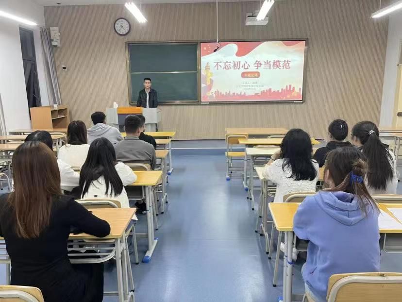 10月11日,best365员工第三党支部代理书记魏锋以 “不忘初心,争当模范”为题,在1409教室为支部党员讲专题党课。