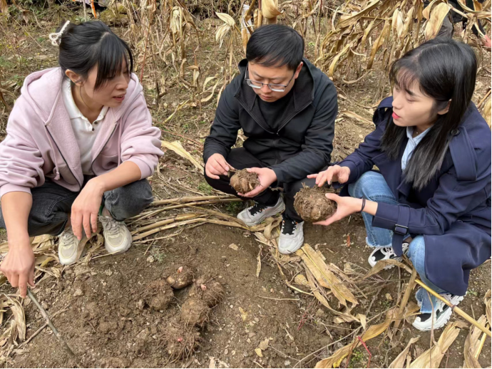 11月7日,best365官方网站best365“三区人才”沈川博士一行人前往汉滨区茨沟镇瓦铺村和铁尺村查看魔芋病害情况。由于九月连续阴雨天气,导致魔芋提前倒苗,球茎偏小,并且部分球茎存在病害感染的迹象。沈川博士利用自身所学知识就魔芋如何安全越冬及病害防治进行了指导,向一些合作社赠送了土壤消毒剂,并亲自指导药物的规范使用。