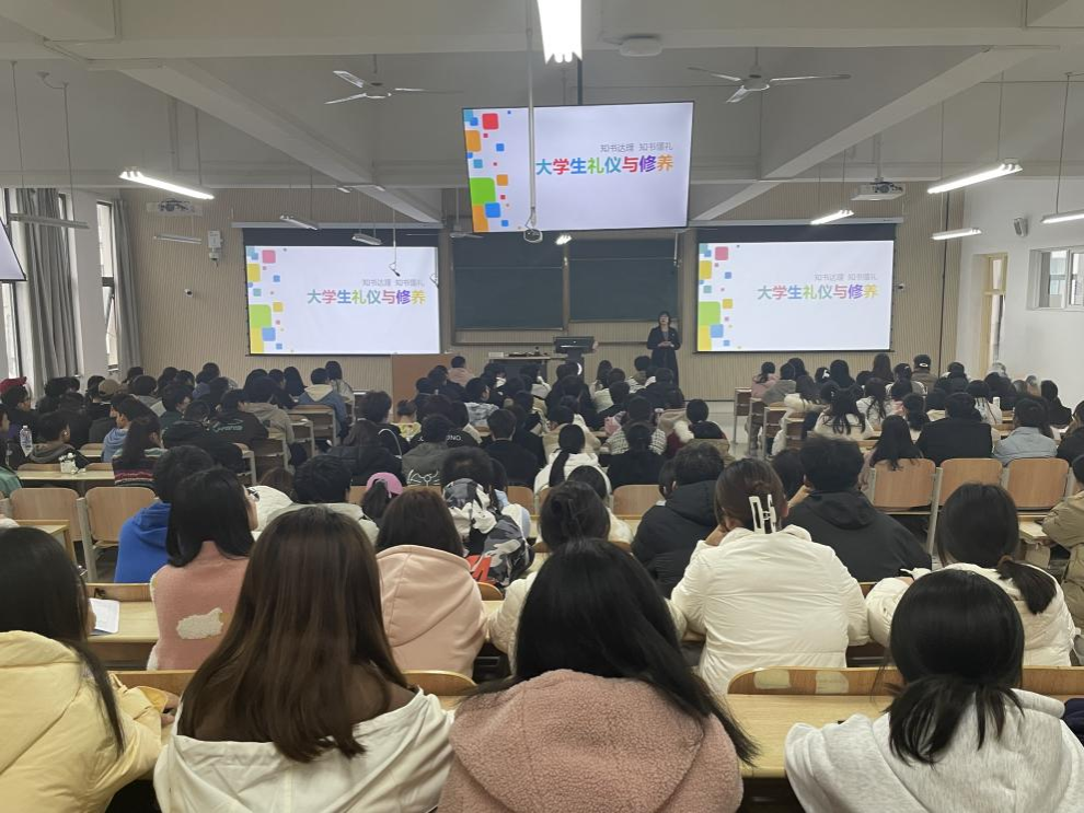 11月15日,best365新生入学教育系列活动之老员工校园礼仪教育讲座在1305教室开讲。本次入学教育专题由best365官方网站学工部副部长王璐老师主讲,2023级全体新生参加。