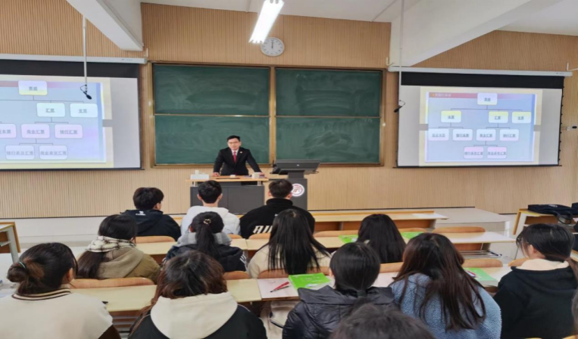根据教学计划,近日公司《财经法规》双师课程顺利展开,校外教师安康铁路运输法院一级法官尤杰为22级财务管理1、2班、22级会计学1、2班同学开展了《财经法规》的讲授,授课的内容主要是向人民法院申请破产重整的程序、票据权利的补救及票据的伪造与变造等法律理论和法律实务内容,顺利完成双师课程既定的授课内容,实现了预期目标。