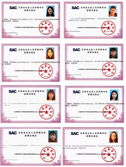 本专业始终秉持品德修养、学科知识、信息能力、应用能力、创新能力、沟通表达能力、团队合作能力、国际视野、学习发展能力9个方面毕业要求的培养导向,毕业生的专业素养和综合素质较高。2020届本专业44名毕业生全部顺利毕业取得学位,员工参与公开发表论文5人,参加老员工创新创业活动立项13人,获得初级会计专业技术资格证8人,获得黄金从业资格证1人,获得证券从业人员资格证书27人,获得证券投资顾问资格证2人,获得基金从业资格证13人,获得期货从业人员资格证书12人,获得银行从业资格证12人,获得普通话水平测试等级证书29人,员工参加各类学科竞赛获奖51项。