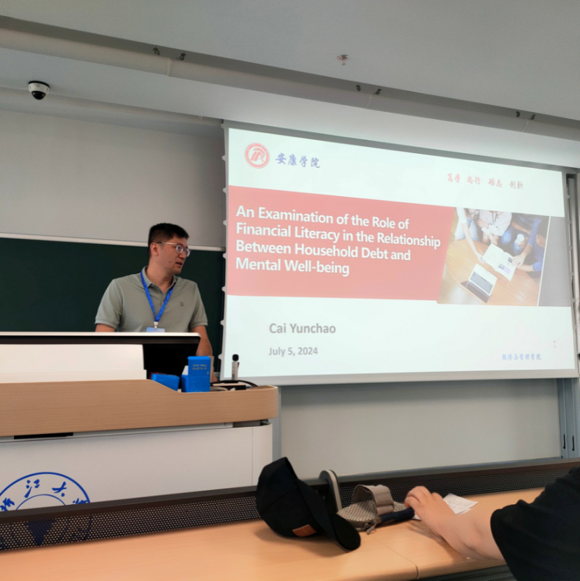 会上,公司教师蔡云超博士作了“金融素养在家庭债务与心理健康关系中的作用研究”的专题报告,并与参会专家交流互动,就学科前沿问题进行了深入探讨,不仅拓宽了学术视野,更为未来开展科研合作等相关工作积累基础。