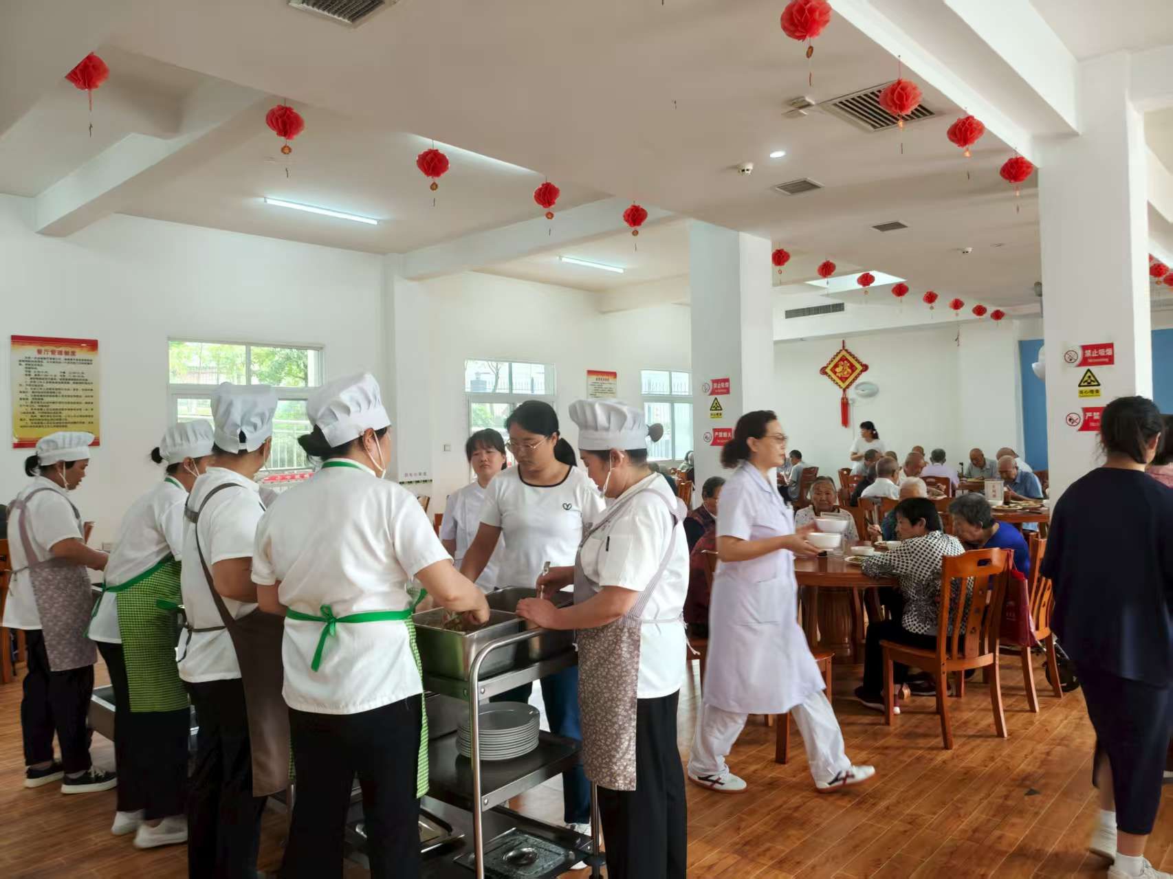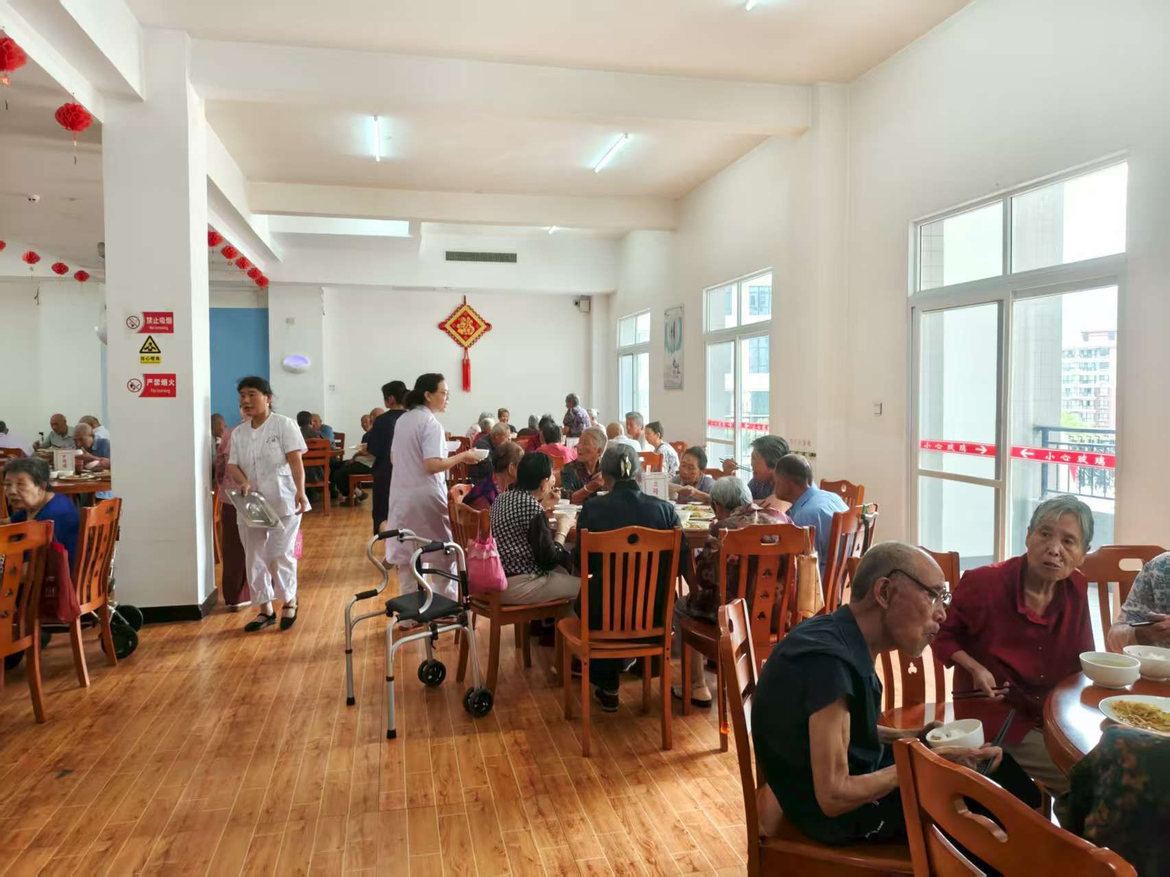 中午用餐时间,工作人员为老人们端上热气腾腾的饭菜,饭菜种类丰富,营养均衡。团队成员了解到,考虑到老年人的饮食需求,工作人员特别注重低盐、低脂、易消化的特点,服务贴心细心。在用餐过程中,团队成员与老人们亲切交谈,进一步了解到他们对公寓生活的满意度以及对服务的建议。