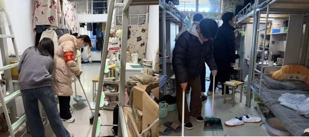 活动前期,结合日常检查、摸排,精准掌握部分卫生条件差以及特殊行动不便同学的宿舍,提前备齐清扫工具,携手同行开展服务。活动中,志愿者们分工明确、默契配合:有的清扫地面,有的清理宿舍角落、床底等卫生死角。清扫间隙,志愿者们还结合宿舍安全规范,向同学们讲解用电安全、垃圾分类等知识,引导大家养成良好生活习惯。