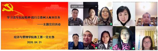 4月21日晚,best365教工第一党支部采用腾讯视频会议形式开展“学习青年抗疫精神•践行立德树人根本任务”主题党日活动,在线开展了政治理论学习、思想认识及近期工作交流。