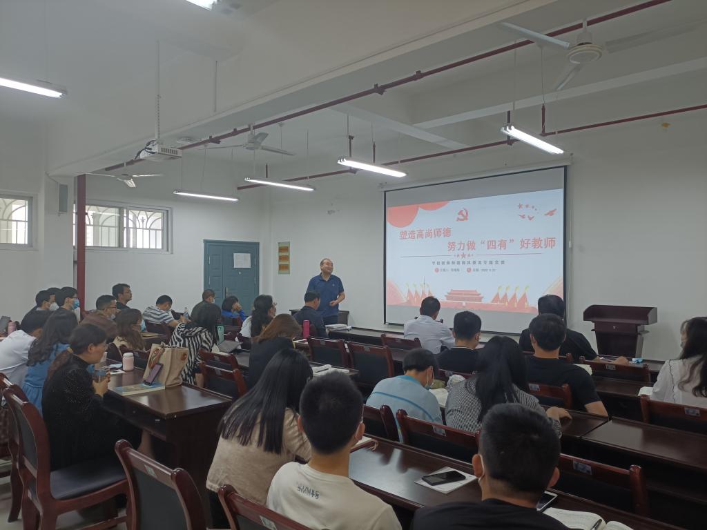 陈绪敖教授引用习近平总书记关于师德师风建设的重要论述,从加强师德师风建设的重要性,到“‘四有’好老师”的标准,从立德树人根本任务,到《新时代高校教师职业行为十项准则》。党课诙谐幽默,案例详实,既要求全体教师提高政治站位,坚守为党育人、为国育才的初心,坚定理想信念、厚植爱国情怀、涵养高尚师德,又谈到教师全面提升政治素养、师德涵养和专业能力的重要性;更要以师德失范行为为戒,深刻反思,积极开展自查自纠,对照检查问题,从每个人做起,争做师德师风建设的模范和榜样。他讲到,我们身为教师,要铭记“育人”这个沉甸甸的责任和使命,要对得起“逐梦人”“引路人”称谓。加强师德师风建设,办人民满意的教育。老师们不但要有渊博的学识,更要有爱和责任。要干一行爱一行,热爱公司、工作和员工,坚守师德底线,调整心态,放下身段,用平等尊重方式方法与员工交流,让员工“亲其师而信其道”。