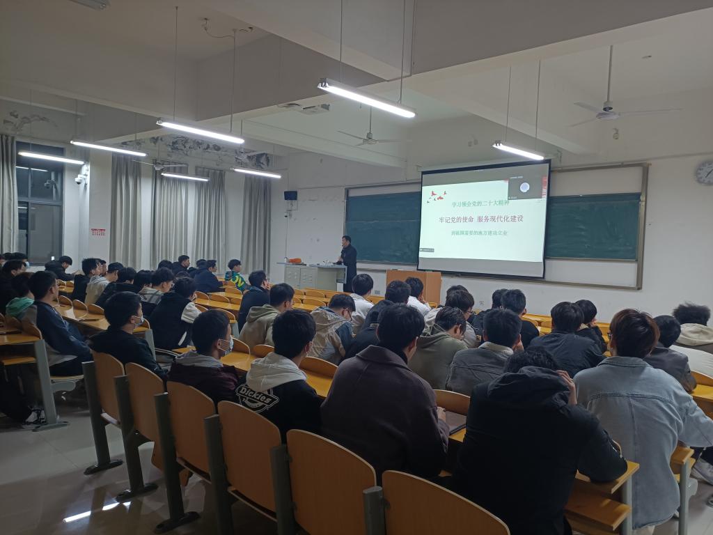 11月16日,公司党总支书记在江北校区一号教学楼1405多媒体教室为毕业生党员讲专题党课,2023届部分毕业生线上参加会议。